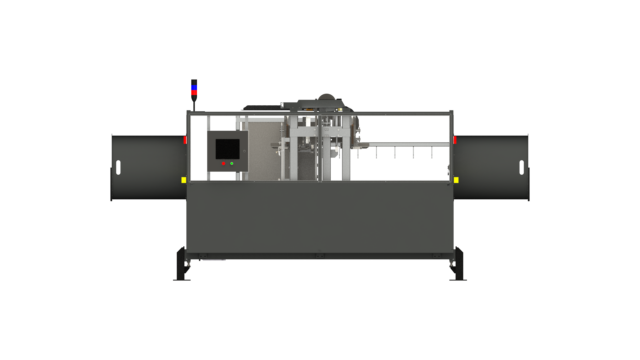 Adescor cut-offs utilize a knife cutting system resulting in clean, quiet operation. Cut-offs can be configured for solid wall or corrugated pipe and can be combined with an integral puller if required. With a second knife option, Adescor cut-offs are ideal for inline bell pipes. Pipe cut-offs can be programmed to account for integrated bells or reduced height corrugations and provide a precise cut at the desired location.